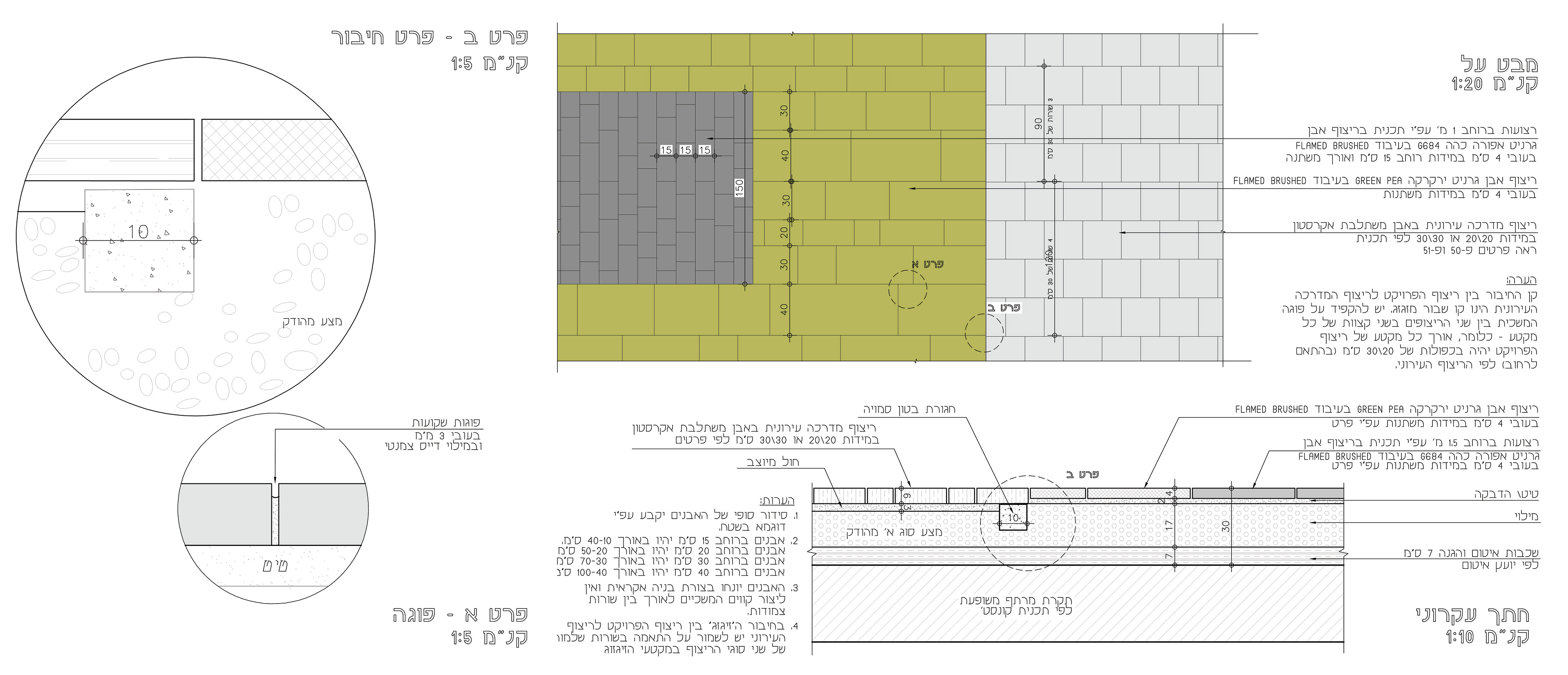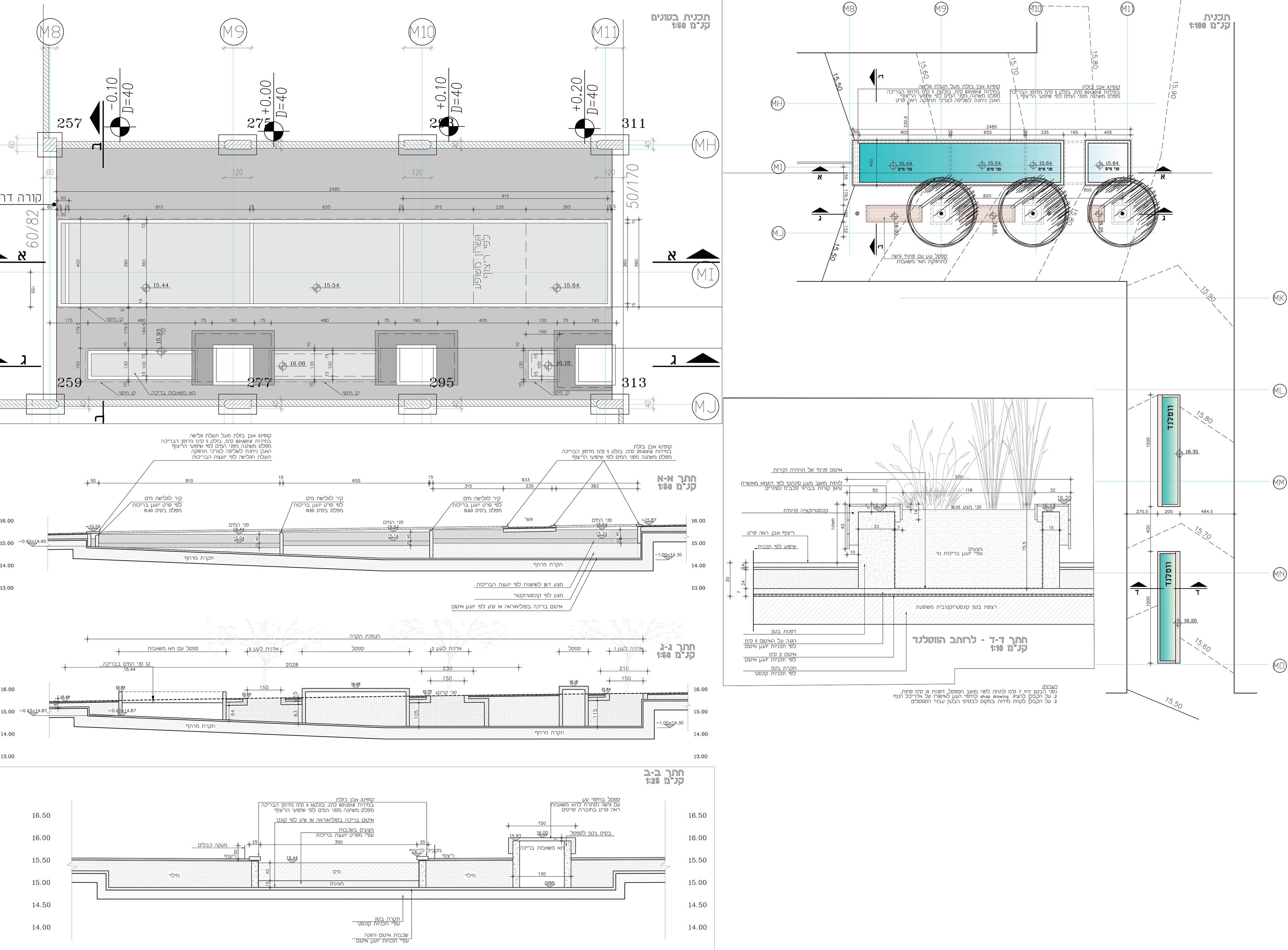 Segment of construction detail sheets for the central eco pond and trees containers