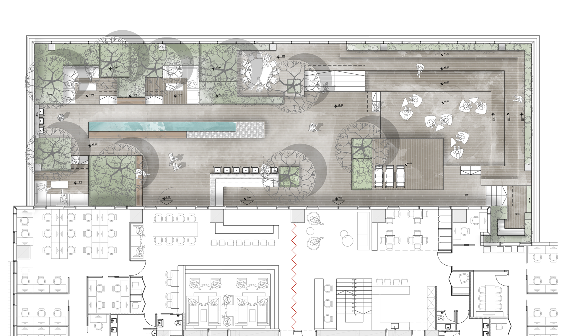 In a small team at Zur-Wolf under my lead we devised a few alternatives, going eventually with a contemporary industrial look and feel that complements the throughout design of Alon Towers complex. I completed the detailed planning and the tender documentation, mainly focusing on design lead and coordination with client and the advising experts.