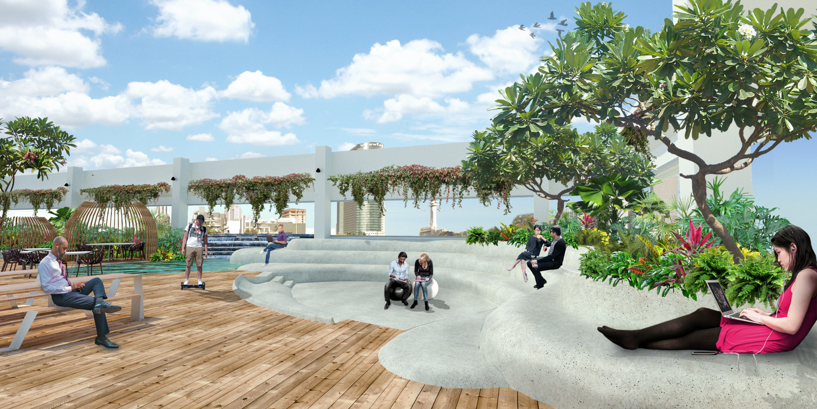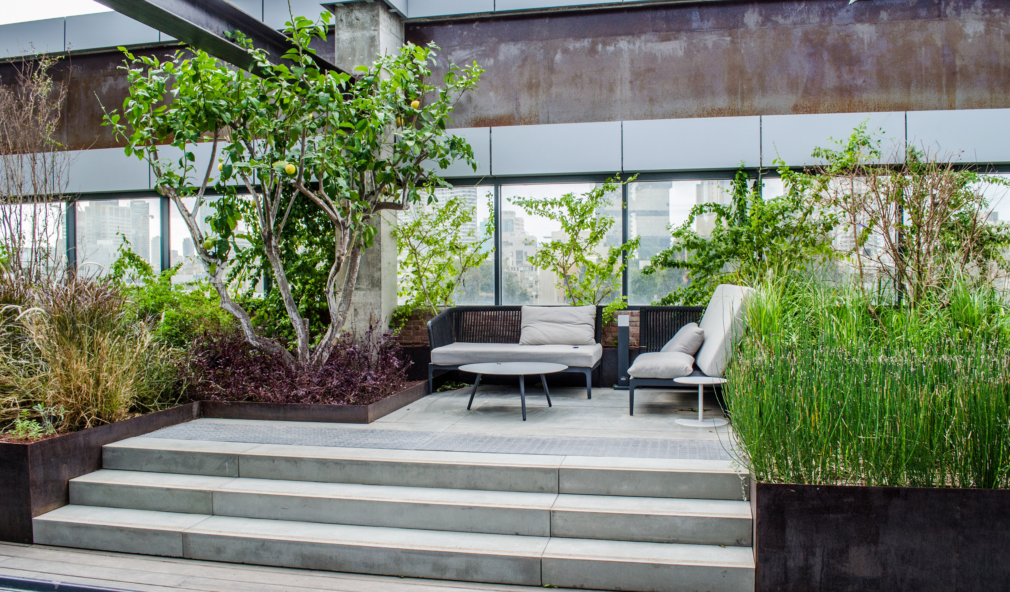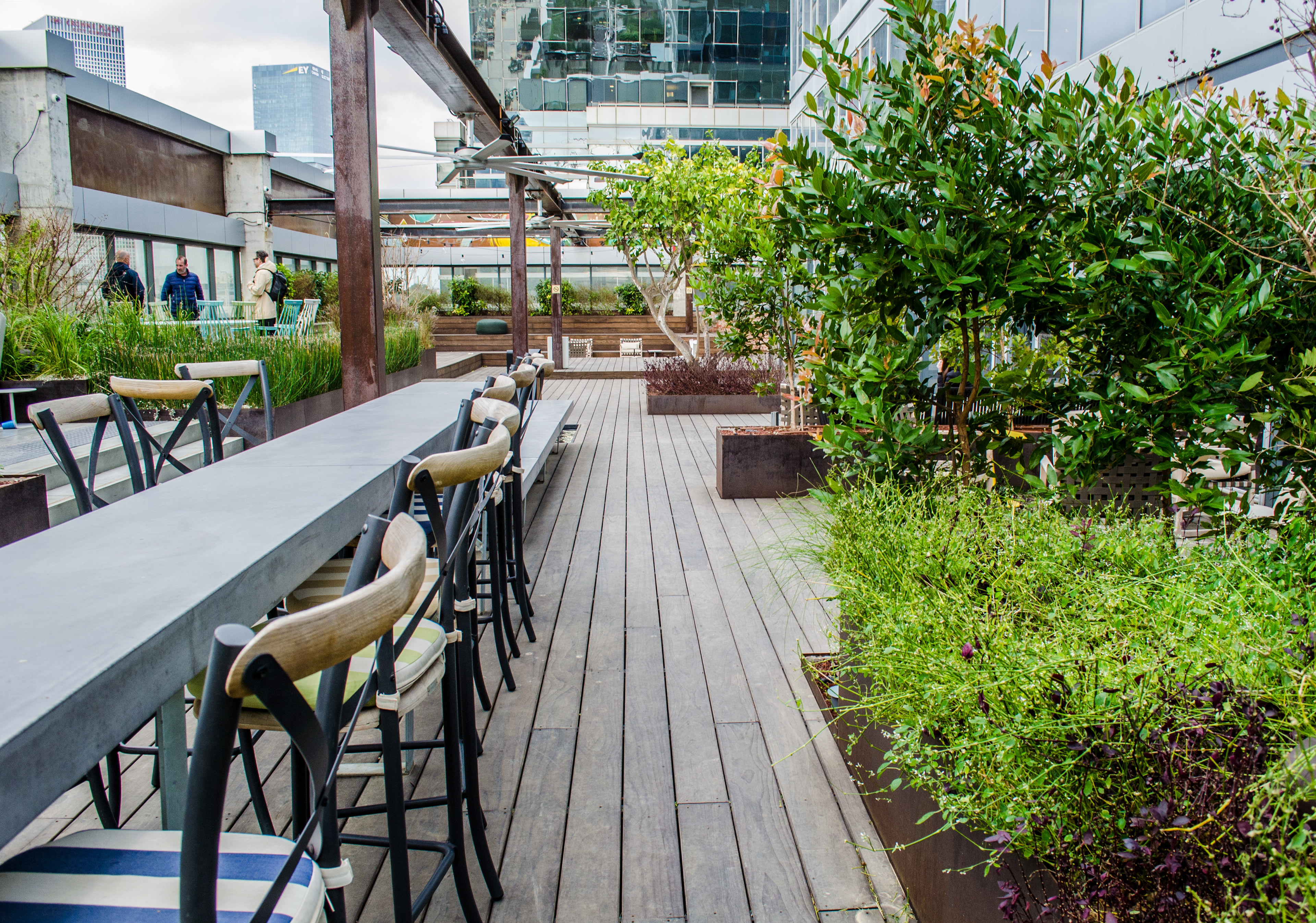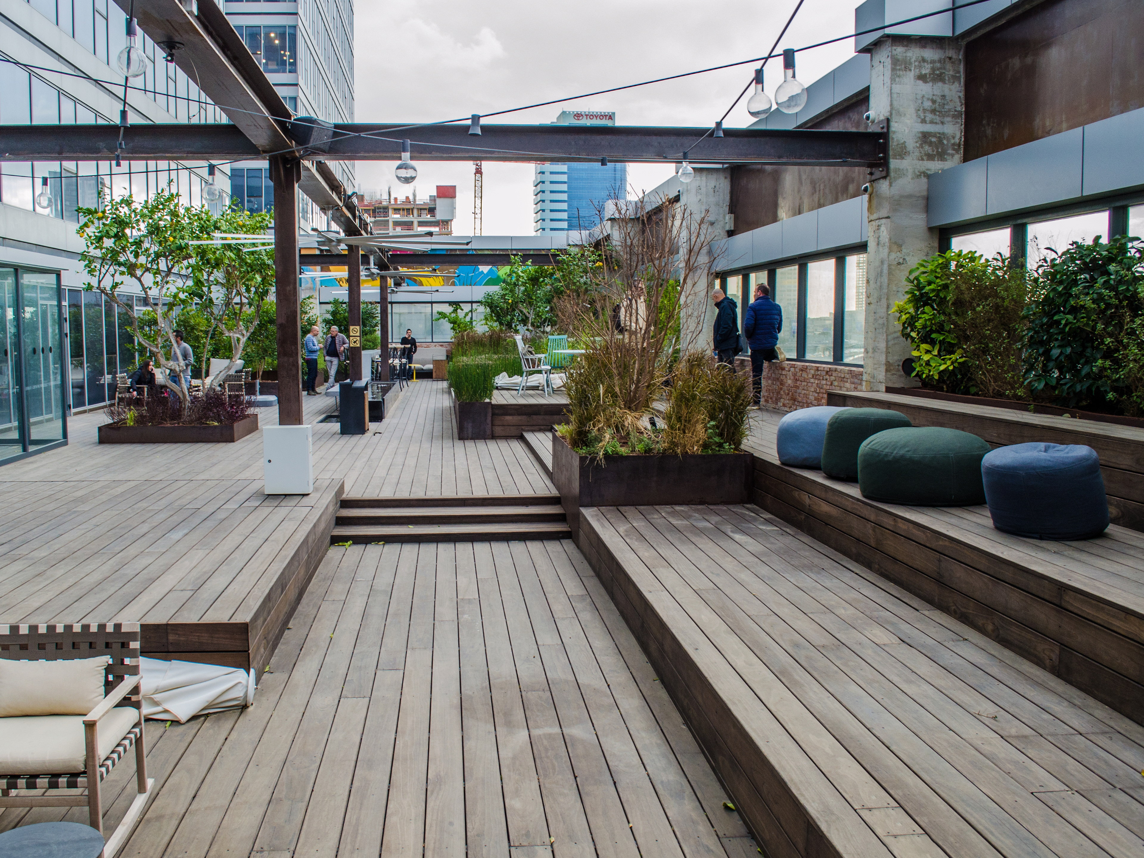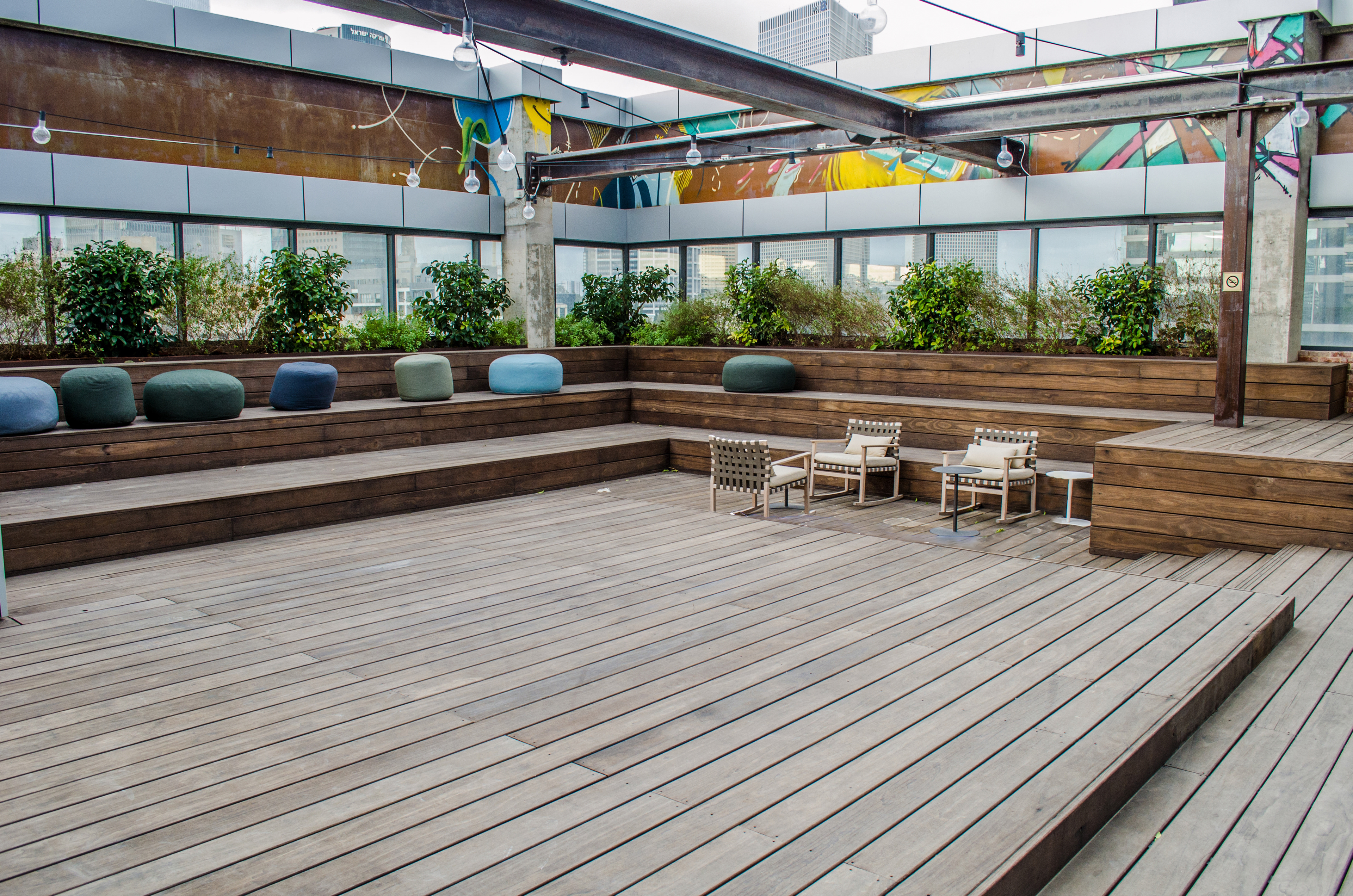 Be All is a shared workspace company that's all about the work environment and the startup community subculture. They had many aspirations for the balcony as their main outdoor space - people relaxing and hanging out on breaks, individuals working, teams having small meetings, an outdoor bar, hosting events up to several hundreds of participants and many more...